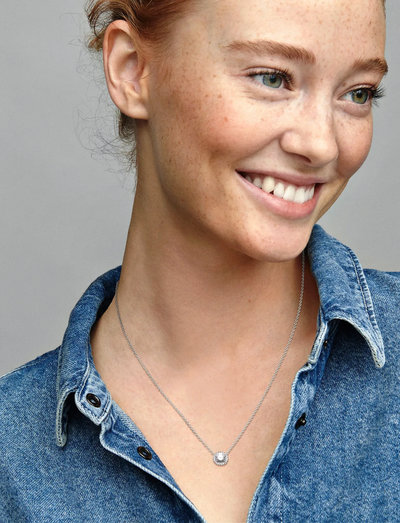 Detta gnistrande halsband är inspirerat av gången tiders glamour och har ett stort, briljantslipat cubic zirconia-hänge, inramat av skimrande stenar. Halsbandet är tillverkat i sterlingsilver och kan justeras i tre olika längder, vilket gör det elegant och mångsidigt för både vardagsbruk och speciella tillfällen. Det är också en perfekt presentidé, särskilt tillsammans med matchande örhängen.