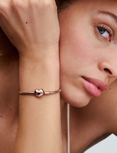 Låt din personliga berättelse skina med detta ormkedjearmband. Det är tillverkat med ett hjärtformat spänne i 14k roséguldplätering, och det polerade spännet har den graverade logotypen på ena sidan och Crown O-logotypen på den andra. Styla detta kedjearmband med dina mest värdefulla berlocker, upp till 16–18 stycken, för en unik vardagslook.