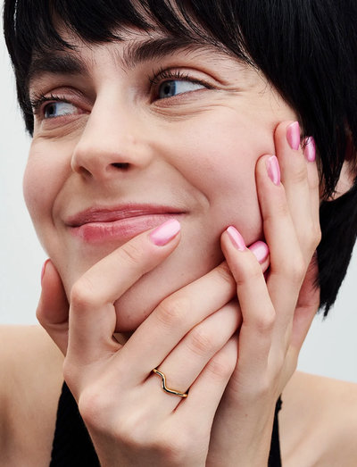 Inspirerad av havet har denna ring en polerad, vågliknande design. Den 14k guldpläterade finishen tillför en touch av lyx, vilket gör den perfekt för att stapla med liknande stilar eller kontrasterande texturer för en unik, modern look.