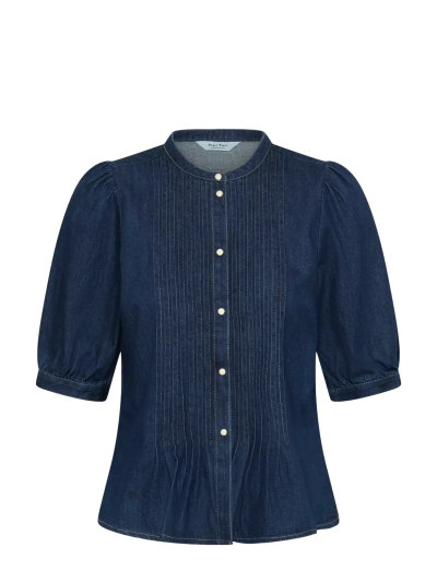 Regular fitDen här skjortan är tillverkad av denim och har en distinkt plisserad framsida som ger en touch av textur och visuellt intresse. Designen kompletteras med korta ärmar och en bandkrage, vilket ger en modern twist på en klassisk silhuett.