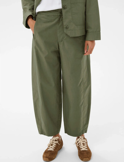 Dessa barrel-byxor erbjuder en avslappnad silhuett med en modern touch. Designen har en bekväm passform och ett subtilt avsmalnande ben, vilket gör dem till ett mångsidigt tillskott till varje garderob.