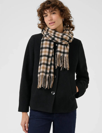 Denna halsduk erbjuder värme och en klassisk look med sitt tidlösa rutmönster. De fransade ändarna ger en touch av textur och rörelse, vilket gör den till en mångsidig accessoar för kyligare dagar.