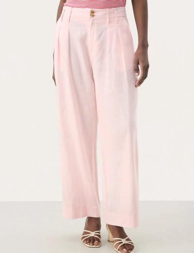 Dessa byxor har en smickrande, bred benmodell som ger en sofistikerad silhuett. Designen har en klassisk knappstängning och subtila veck för extra elegans.