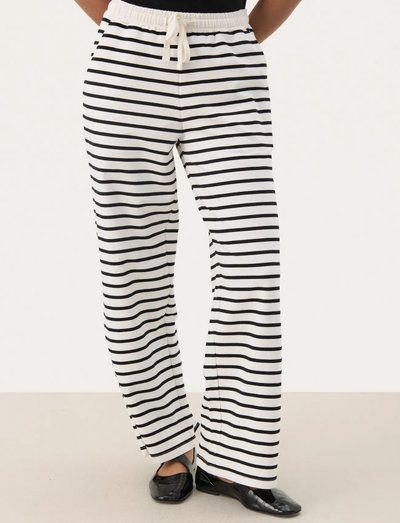 Dessa randiga byxor har en avslappnad passform och är ett enkelt sätt att lägga till visuellt intresse till din vardagsgarderob. Den raka benmodellen säkerställer en smickrande silhuett, medan den bekväma midjan ger komfort hela dagen.