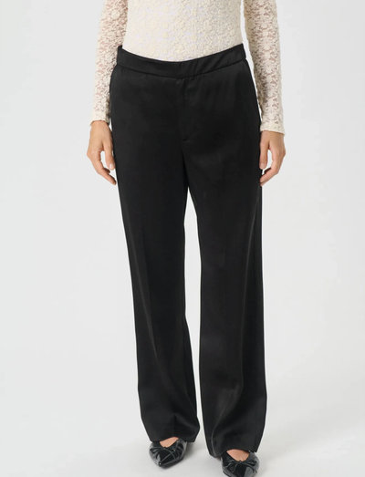 Dessa skräddarsydda byxor erbjuder en elegant silhuett med sin raka ben design. Klädesplagget har en bekväm midjeband och en ren, minimalistisk estetik, vilket gör dem till ett mångsidigt tillskott till varje garderob.