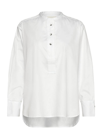 Loose fitDenna topp har en ståkrage och långa ärmar, vilket ger en raffinerad silhuett. Knappslån ger en detaljerad touch, vilket gör den till ett mångsidigt tillskott till varje garderob.