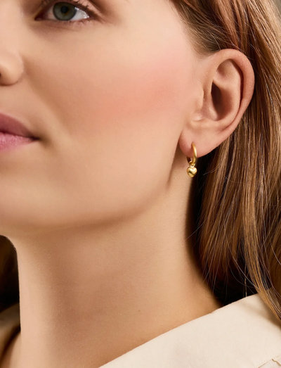 Dessa huggie-örhängen har en unik design. Smal hoops med små hjärtformade hängen. Perfekt accessoar för vardagen. Snyggt och elegant. Ger en touch av charm.