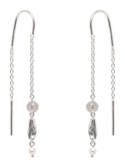 Inspirerade av den eteriska skönheten hos skiftande moln har dessa earchains mjuka, vågiga former. Labradorit och sötvattenspärlor framhäver den fina kedjan och skapar en elegant och feminin accessoar. De är tillverkade av certifierat återvunnet silver och säljs som ett par.