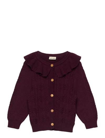 Knitwear from Petit Piao with a beautiful pattern. The cardigan has many fine details with frills around the neck. Fine natural wooden buttons are sewn on to close the cardigan. The edges of the cardigan are all finished with a wide ribbed edge. The quality is in a beautiful soft cotton and in a stronger knit. Made in China.