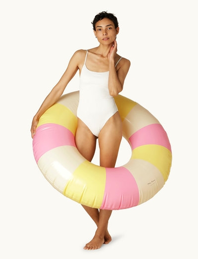 badringar och livsstilsprodukter. Estetiken är klassisk och enkel, designen oberoende av kortvariga och snabbt skiftande modetrender. Med sina distinkta ränder och en vacker färgpalett förhöjer Petites Pommes badringar en dag vid poolen eller stranden.