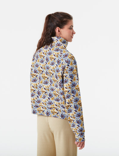 QUENDA 1/2 ZIP P SWEAT är en snygg och bekväm sweatshirt med en halv dragkedja. Den har ett blommigt tryck och en avslappnad passform. Den här tröjan är perfekt för lager på kalla dagar.