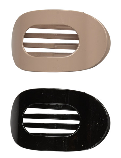 Säkra din stil med detta set med två hårspännen. Varje spänne har en unik slitsad design som ger en modern touch till varje frisyr.