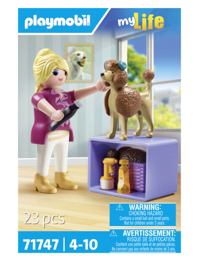 Hundens frisör ser till att pudeldamen är vackert stylad.