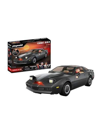 "Knight Rider, en mörk flykt in i den farliga världen av en man som inte existerar. Michael Knight, en ung ensamvarg på ett korståg för att stå upp för de oskyldiga, hjälplösa och maktlösa i en värld av brottslingar som tror att de står över lagen." En detektiv som man trodde var död, men som nu har en ny identitet. Han drivs av rättvisa och försöker utrota brottsligheten med hjälp av K.I.T.T., en futuristisk, artificiellt intelligent bil som är utrustad med högteknologiska prylar och vapen. Nu kommer K.I.T.T., den legendariska mirakelbilen från 1980-talets succéserie Knight Rider, till PLAYMOBILs fordonspark. Precis som sin storebror är PLAYMOBIL K.I.T.T. utrustad med en hel rad autentiska funktioner som till exempel en skrivare under instrumentbrädan för att skriva ut foton av eftersökta brottslingar, en roterande registreringsskylt, en lina med en gripkrok, fällbara strålkastare och ett avtagbart tak. K.I.T.T. har elektroniska ljud och lampor som styrs med en touchfunktion på motorhuven. Fordonet citerar fraser från serien med den ursprungliga ikoniska K.I.T.T.-rösten. Vissa fraser är kopplade till på/av-funktionen, medan de andra spelas slumpmässigt. Samtidigt tänds den ikoniska skannerlampan på fordonets framsida och blinkar lampan på instrumentbrädan. Förutom huvudkaraktären Michael Knight innehåller speluppsättningen också mycket detaljerade tillbehör som Bonnie Barstows datorlabb och Devon Miles kontorsmöbler. Nu är det dags att sätta sig i bilen och köra till nästa uppdrag.