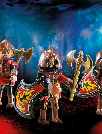 Speluppsättningen innehåller tre Burnham Raiders med rustning och hjälm, svärd, stridsyxa, dubbelyxa och andra tillbehör.