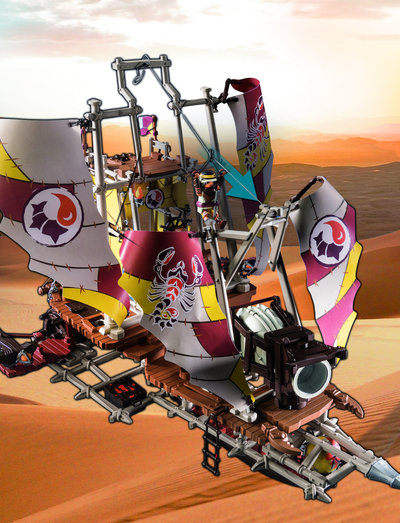 Äventyren i Sal'ahari Sands fortsätter. Novelmore-hjältarna Arwynn, Gwynn och Dario har slagit ihop sig med det modiga ökenfolket Ahari för att konfrontera den kusliga skelettarmén. Med hjälp av Sandstormaren rör de sig snabbt genom den heta ökensanden och övervinner utan ansträngning saltsjöar och sanddyner. Anfallare hålls på avstånd med den stora bälgkanonen, slagträet och de nya giftpilarna. Med hjälp av sidonäten kan skorpioner eller föremål fiskas upp ur sanden under resan. Ombord finns Arwynn och Gwynn, två Ahari-krigare, en bälgpistol, giftpilar och många andra extra saker för spännande ökenäventyr. Fartyget kan skjutas på marken med hjälp av hjulen.