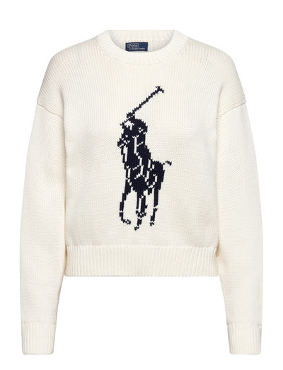 En klassisk stickning ger värme och en tidlös look. Denna tröja med rund hals har en stor signaturlogga på framsidan, vilket ger en touch av varumärkeskännedom till en bekväm design. Ribbstickade muddar och nederkant hjälper till att hålla kylan ute.