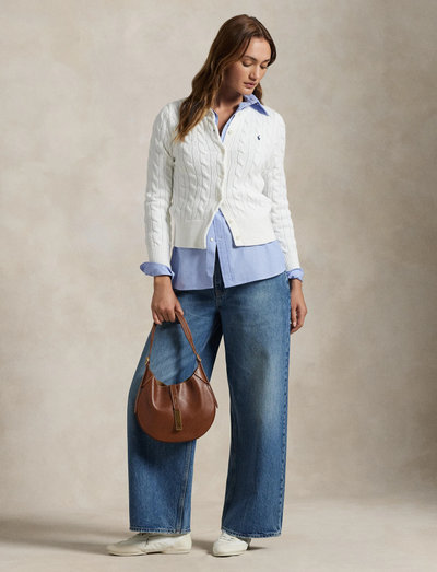 Denna långärmade cardigan är tillverkad av mjuk bomull och har en klassisk kabelstickad design. Den är avslutad med en knappstängning fram och ribbade kanter, vilket ger både komfort och tidlös stil.