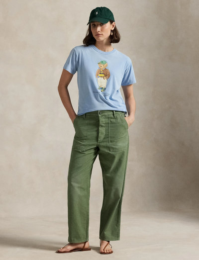 En karakteristisk gummitryckt och broderad björn ger en lekfull touch till denna T-shirt i bomullsjersey. Den runda halsen och de korta ärmarna skapar en klassisk silhuett, medan den något avslappnade passformen säkerställer komfort hela dagen. Avslutad med en signaturlogga.