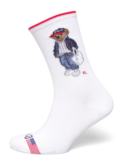 Dessa strumpor har ett signaturmotiv med en björn och ger en lekfull touch till varje outfit. Designen har en ribbad mudd för en säker och bekväm passform, medan det mjuka stickade materialet säkerställer komfort hela dagen.