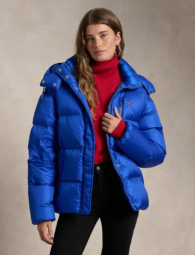 Made with water-repellent fabric, this 750-fill-power down jacket is designed with a detachable hood, snapped storm placket, and zip pocketing at the chest and waist. Our signature Pony is embroidered at the chest for pure Polo style.Relaxed fit. Intended to hit at the hip.Size medium has a 27" body length and a 34.25" sleeve length. Body length and sleeve length are taken from the center back of the neck. Sleeve length changes 0.75" between sizes.Detachable drawstring hood. Two-way full-zip front. Snapped storm placket. Long sleeves. Elasticized cuffs. Dropped shoulders. Left chest zip pocket. Two front waist zip pockets. Signature embroidered Pony at the left chest. Elasticized hem. Fully lined.