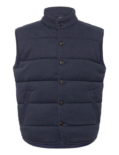 Denna quiltade väst har ett subtilt hundtandsmönster och erbjuder lätt värme och en raffinerad look. Designad med full knäppning fram och passpoalfickor, vilket kombinerar klassisk stil med praktiska funktioner.
