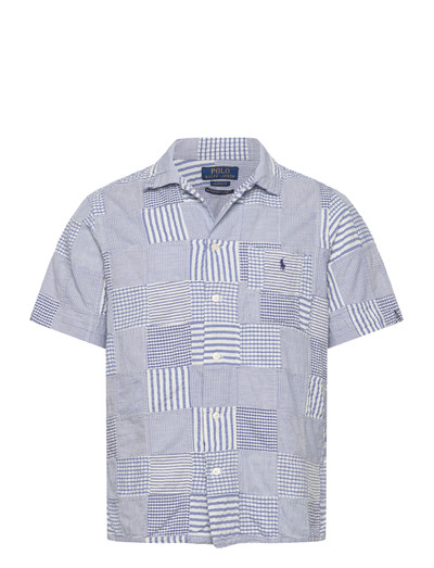 Denna kortärmade skjorta har en patchwork-design som ger en distinkt look. Seersucker-väven ger en lätt och luftig känsla, perfekt för varmare väder. Den är avslutad med en camp-krage och en bröstficka.