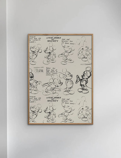 A true tribute to Mickey Mouse through the decades. The Mickey Mouse inspired sketch poster showcases the evolution of this iconic character — from classic to contemporary. Perfect for lovers of visual culture and Disney history.