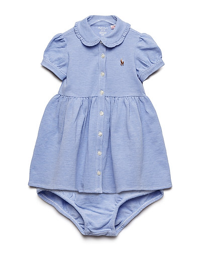 Puffärmar och en rynkad midja skapar en charmig silhuett på denna oxfordskjortklänning. Designen har en knäppning fram och en klassisk krage, perfekt för alla speciella tillfällen.