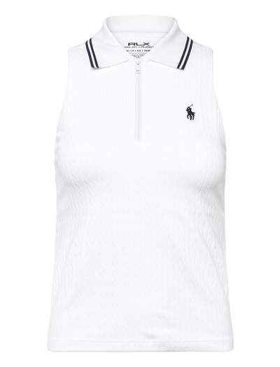 Denna pikétröja har en ärmlös design och racerback-skärning, vilket ger ökad rörlighet och en modern silhuett. Den slimmade passformen framhäver formen, medan den korta dragkedjan ger en sportig touch.