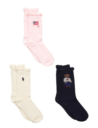 Det här trepack strumpor har lekfulla detaljer. Varje par är tillverkat av mjuk bomull och har en volangkant.