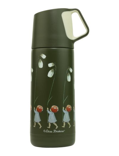 A wonderful thermos in stainless steel with motifs from Elsa Beskow's book Blomsterfesten. The thermos holds 350 ml of hot or cold liquid and is just as suitable for winter outings as it is for the beach. The accompanying mug is made of rubberized plastic