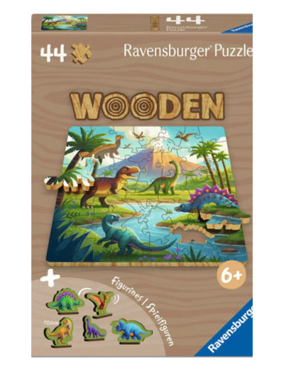 WOODEN Dinosaurus 44p. Upptäck den perfekta passformen! Ravensburger har ett perfekt pussel för varje barn. Med intressanta motiv och strategiska storlekar på bitarna samt en mängd olika format garanteras framgång för alla åldersgrupper och svårighetsgrader. Njut av Ravensburger-kvalitet med denna familjevänliga aktivitet!