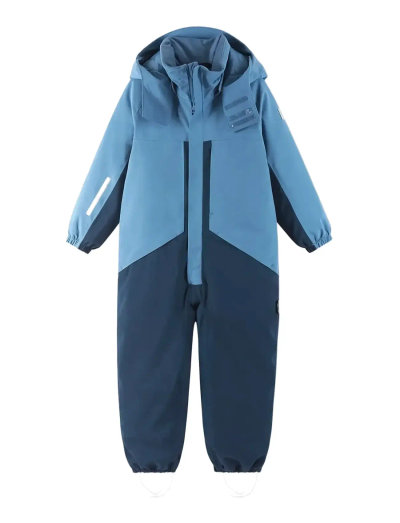 Designed for active children braving the coldest winter times, the kids' waterproof snowsuit Varila ensures warmth. This robust suit features fully taped seams and a waterproof, windproof, and breathable material, keeping your child dry and comfortable. Its extremely efficient insulation and smooth lining offer snug warmth, while the water and dirt repellent finish makes maintenance easy. The adjustable and detachable hood, along with elastic cuffs and leg ends, provide a perfect fit. Zip pockets, waist adjustment, and durable silicone foot loops enhance functionality. Reflective details boost visibility during low-light adventures, making this overall a winter wardrobe essential. This design is skillfully cut for full freedom of movement - a feature your child will surely appreciate. This is a bluesign® product, meeting the strict safety and environmental requirements of the bluesign® criteria: Made of bluesign® approved fabrics and accessories and produced in a resource conserving way, with a minimum impact on people and the environment.