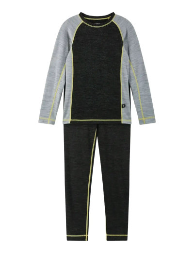 Förseglade sömmarDetta underställsset garanterar värme och komfort. Tillverkat med en dubbelvävd konstruktion, har det mjuk lyocell mot huden för fuktabsorption och en len känsla, medan ytan av ull ger optimal värme. Lyocell håller barnen fräscha genom att transportera bort fukt, och ullen isolerar även när den är fuktig, vilket gör det idealiskt för termisk komfort både inomhus och utomhus.