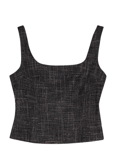 Denna eleganta och strukturerade topp ger en modern silhuett. Den ärmlösa designen och den figurnära formen gör den idealisk för lager-på-lager eller för att bäras separat, medan det texturerade tyget ger ett visuellt intresse.