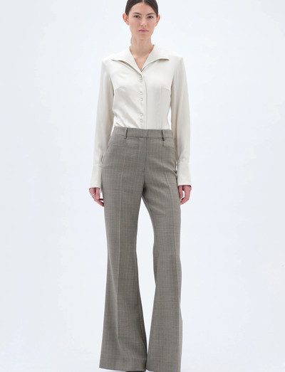 Dessa byxor har ett subtilt rutmönster och en sofistikerad silhuett. Det utsvängda benet skapar en retroinspirerad look, medan den skräddarsydda linningen säkerställer en bekväm passform. Kombinera med en instoppad blus för en elegant ensemble.