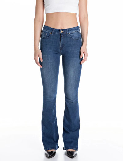 10 OZ DARK INDIGO POWER STRETCH DENIM JOELLA Trousers FLARE REGULAR WAIST 99 Denim