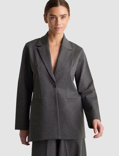 Med sin raka silhuett erbjuder denna kavaj en tidlös och kraftfull look. En enkel knäppning framtill kompletterar den strukturerade kragen, medan två passpoalfickor framtill ger en elegant detalj.