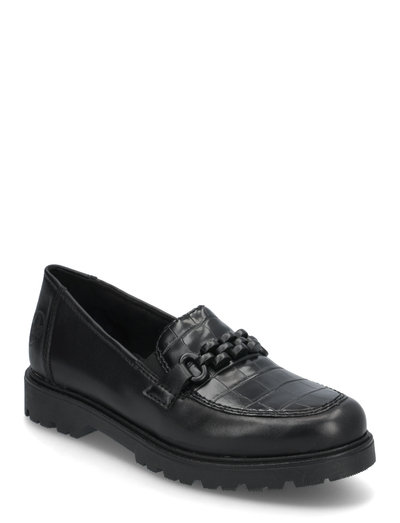 De följer dig vart du än går! Dessa svarta Rieker loafers i slätt läder imponerar med en klassisk design och hög komfort. Dessutom passar skon som handen i handsken tack vare det elastiska bandet. Den dekorativa kedjan fräschar upp designen på ett effektivt sätt. Med den greppvänliga och lätta sulan är det en självklarhet att gå säkert på fötterna och den extra mjuka mellansulan ger ökad komfort. 100% favoritsko potential!
