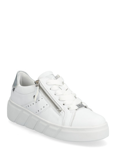 These white Rieker low-top sneakers are made from high-quality smooth leather. Top combination of zip and laces for quick and easy on and off. EVA outsole with ultra light and flexible properties. Padded, cushioning and removable insole. Light micro velour and Drysport lining with breathable properties.