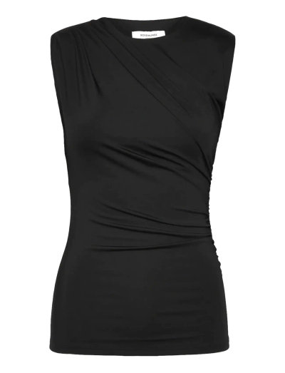 En draperad detalj ger en sofistikerad touch till denna ärmlösa topp. Designen erbjuder en smickrande silhuett, vilket gör den till ett mångsidigt tillskott till varje garderob.