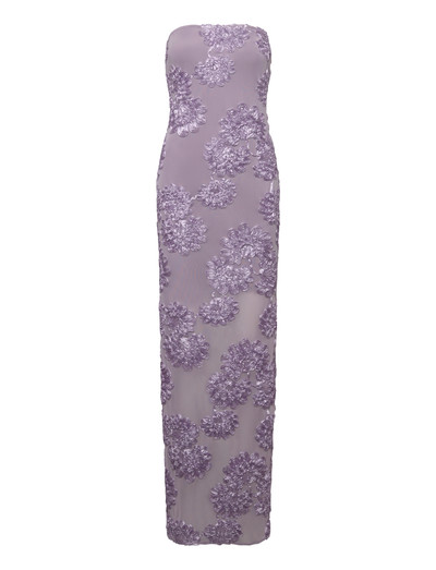 Blomsterapplikationer ger en texturerad, dimensionell look till denna axelbandslösa maxiklänning. Bodycon-siluetten säkerställer en smickrande passform, perfekt för att göra ett statement vid alla speciella tillfällen.