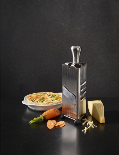 Kompakt multirivjärn för att riva och skära allt du kan tänka dig samtidigt som det är lätt att stoppa undan i lådan. Multirivjärnet river fint och grovt samt strimlar, och kan användas till många olika ändamål, till exempel riva parmesan eller potatis och slanta morötter. Snittytan kan tas loss för rengöring. Silikonfötterna gör att du kan arbeta utan att rivjärnet flyttar sig på bordet. Inklusive skyddande etui.