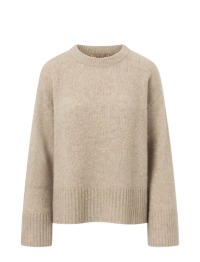 Upplev oöverträffad komfort med denna raffinerade stickade tröja. Denna tröja är tillverkad av en blandning av kashmir och silke och har en avslappnad, boxig passform som kompletteras av nedhasade axlar för en modern silhuett. Sidosprund förstärker det moderna utseendet, medan ribbade detaljer i halsringningen, nederkanten och muddarna ger en touch av tidlös elegans.