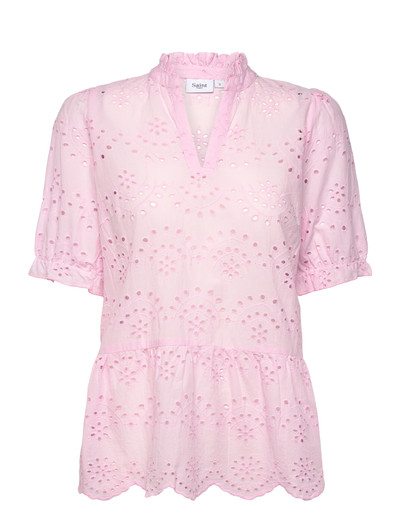 Denna kortärmade blus har fina broderie anglaise-detaljer som ger en lätt och luftig känsla. Den normala passformen säkerställer en bekväm silhuett, vilket gör den till ett mångsidigt tillskott till varje garderob.