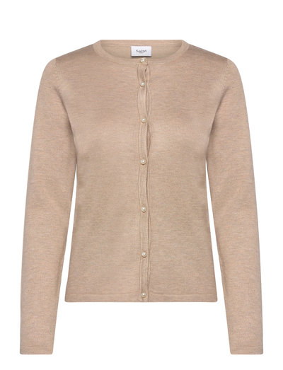 Denna finstickade kofta är ett mångsidigt lager-på-lager-alternativ. Den har en rund halsringning och en delikat knappstängning, vilket gör den till ett tidlöst tillskott till varje garderob.