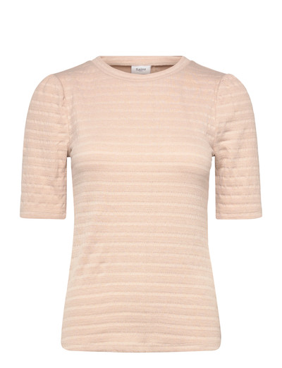 Denna kortärmade blus har en subtil texturerad finish som ger en raffinerad look. Den klassiska runda halsringningen och den strömlinjeformade silhuetten gör den till ett mångsidigt tillskott till varje garderob, som enkelt kan kläs upp eller ner för olika tillfällen.