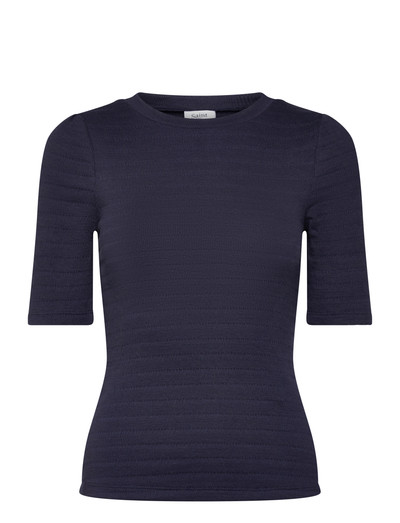 Denna kortärmade blus har en subtil texturerad finish som ger en raffinerad look. Den klassiska runda halsringningen och den strömlinjeformade silhuetten gör den till ett mångsidigt tillskott till varje garderob, som enkelt kan kläs upp eller ner för olika tillfällen.