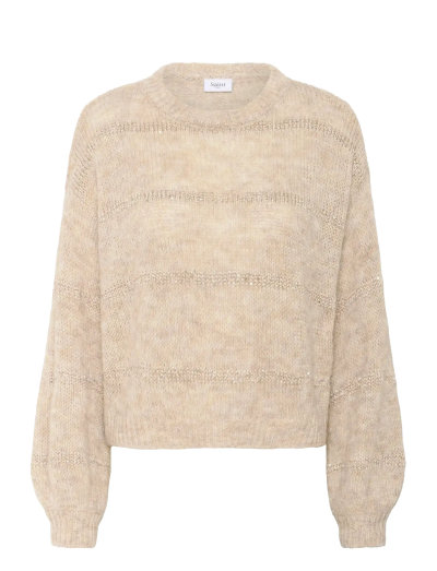 Denna stickade tröja har en avslappnad silhuett och subtila horisontella detaljer. Den mjuka texturen och bekväma passformen gör den idealisk för lager-på-lager eller att bäras som den är.